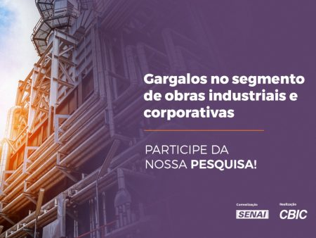 Quais são os gargalos no segmento de obras industriais e corporativas para sua empresa? A Comissão de Obras Industriais e Corporativas (COIC) da Câmara Brasileira da Indústria da Construção (CBIC) está realizando uma pesquisa...