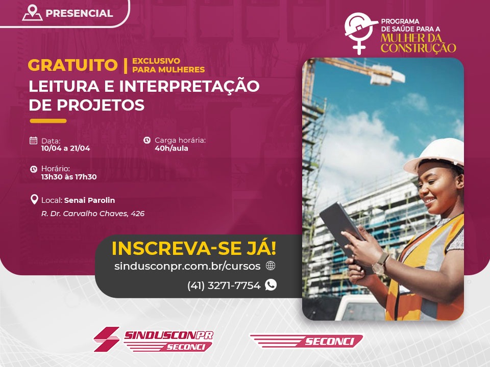 CURSO GRATUITO PARA AS MULHERES DA CONSTRUÇÃO CIVIL