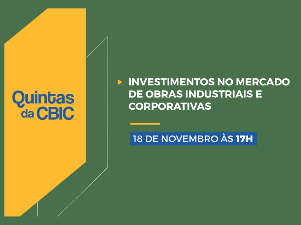 Quintas da CBIC abordará investimentos no mercado de obras industriais e corporativas