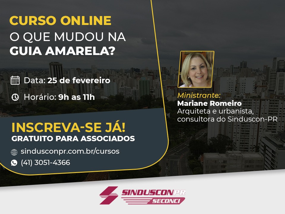 Sinduscon PR promoverá curso sobre a nova Guia Amarela em fevereiro